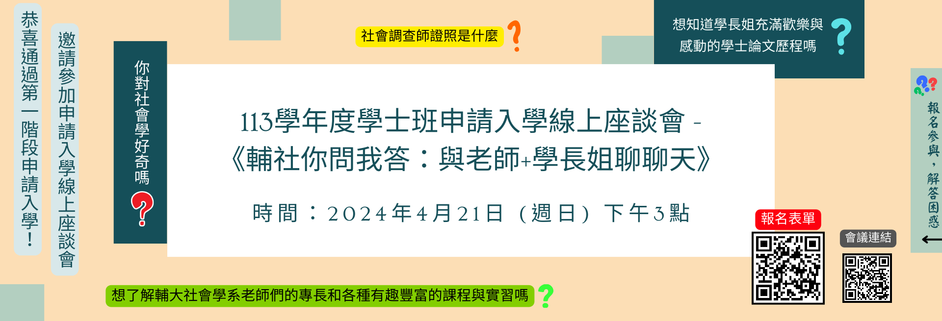 113學年度學士班申請入學線上座談會 -《輔社你問我答:與老師+學長姐聊聊天》