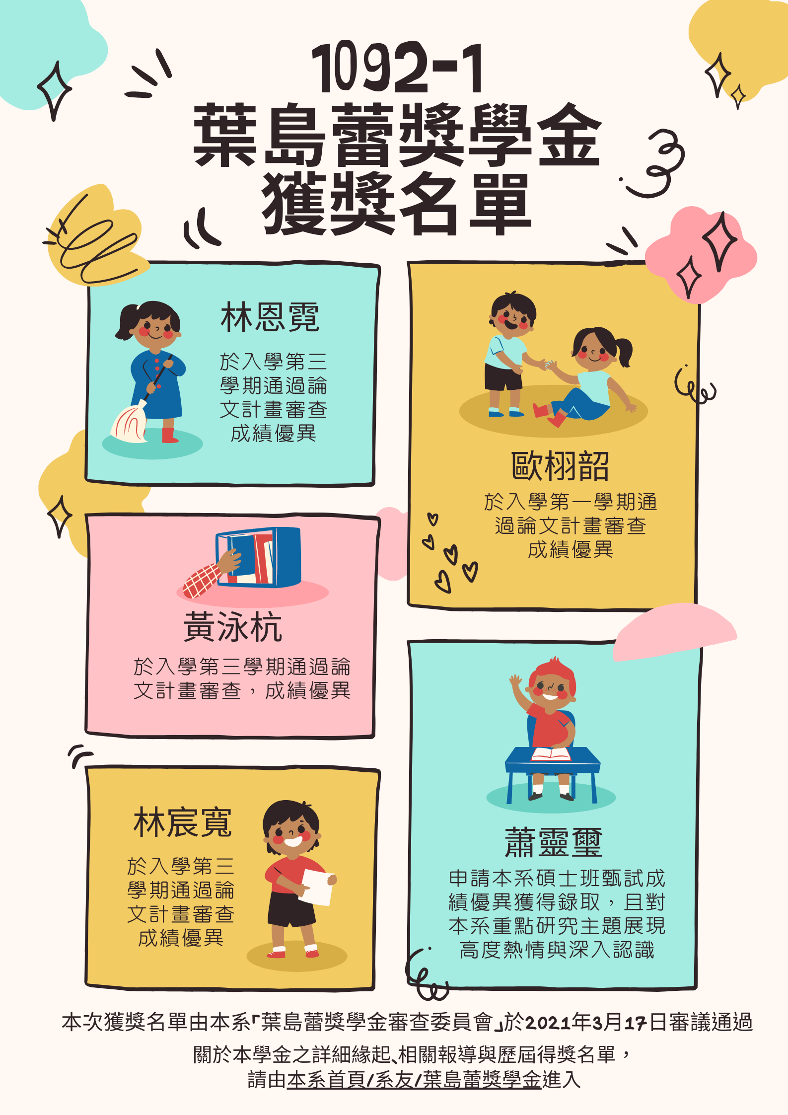學金降低經濟負擔,從而鼓勵或吸引具有學術潛力之大學部學生進入本系碩士班就讀,或透過奬學金免除在學學生之經濟壓力,得以將更多心力投注在課業